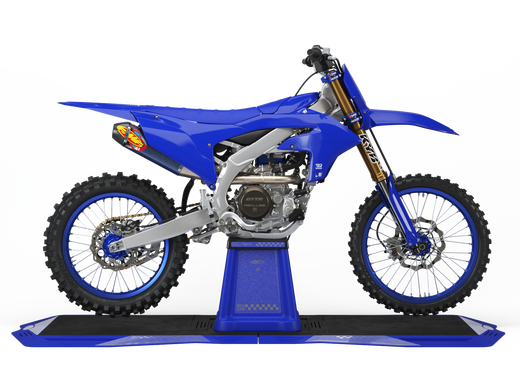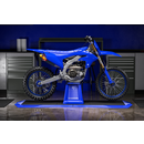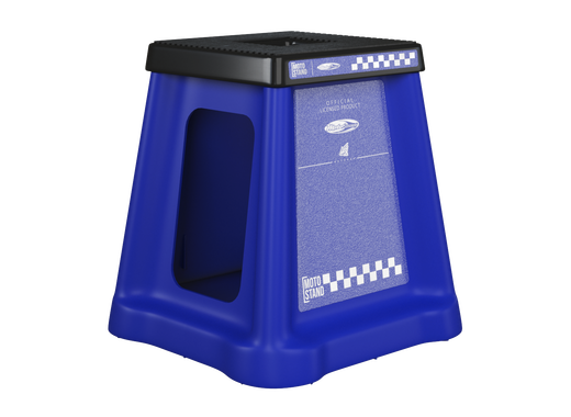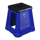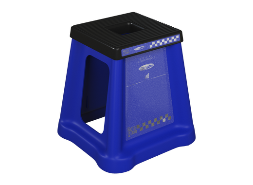 An affordable, injection molded motocross bike stand that won't scratch your bike, truck, or belongings. It’s the strongest stand on the market, holding up to 3000 lbs. The durable plastic will outlast and outperform any other traditional or custom motocross bike stand. This dirt bike accessory comes equipped with a tough non-slip rubber top and space on both sides for custom graphics, sponsor logos, or rider name and number.